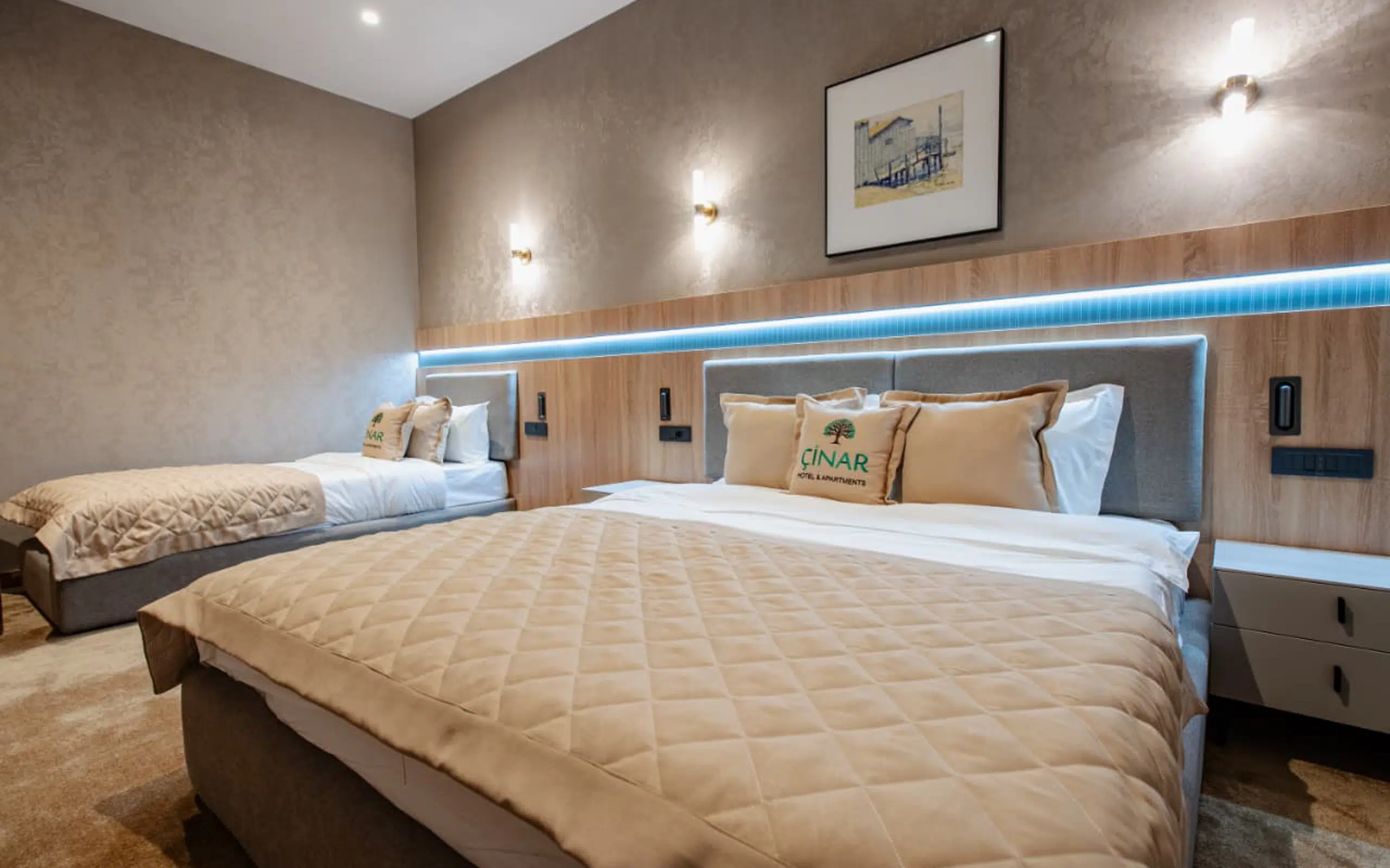 Otel və apartament bir arada olmaqla 6 fərqli otaq tipimiz mövcuddur: Standard Double, Standard Twin, Deluxe Double, Deluxe Triple, Junior Suite və Family Suite.